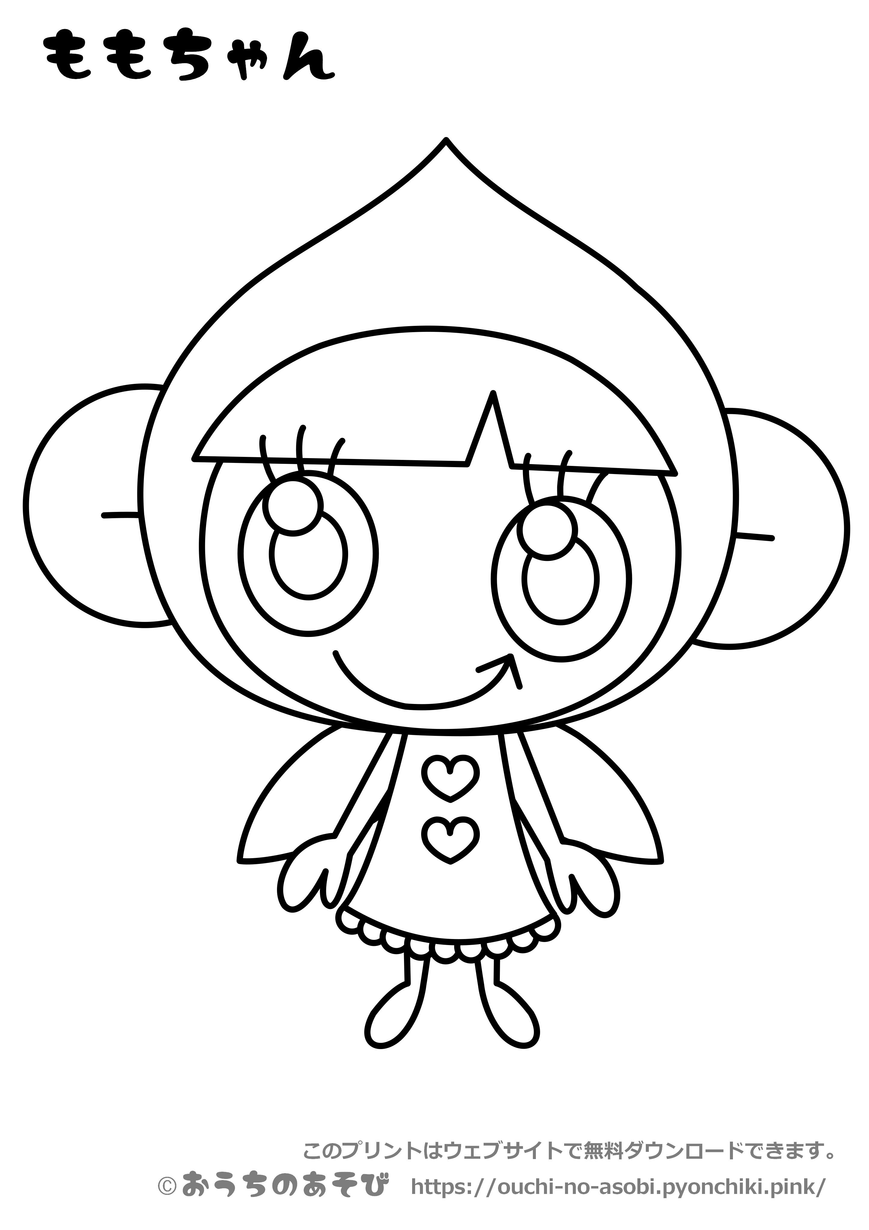 おうちのあそび公式キャラクター『じゅーしーず』のももちゃんがぬりえになったよ!